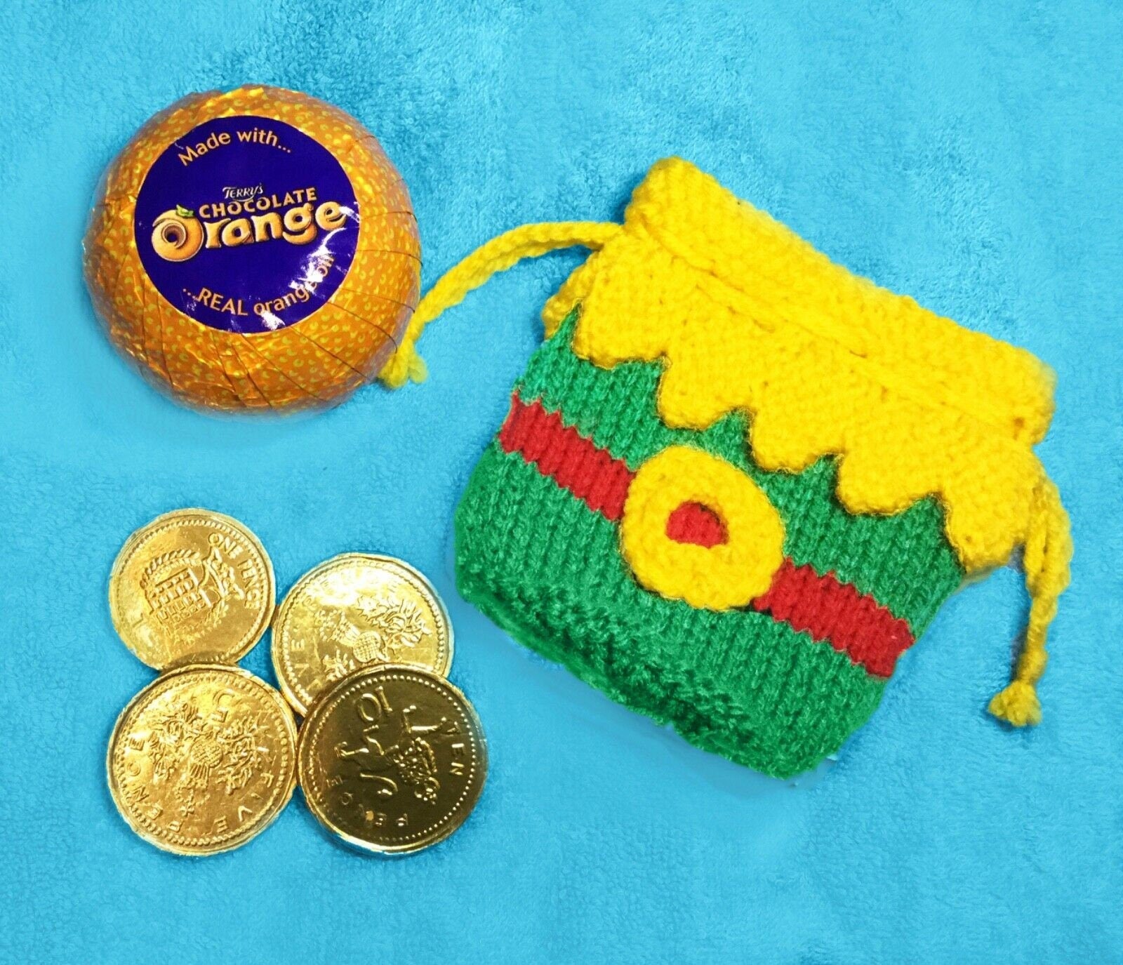 KNITTING PATTERN - Elf Sack Drawstring Christmas Gift Bag 10cms fits Choc orange