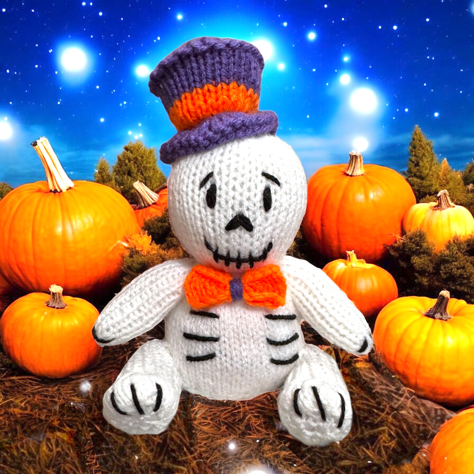 This adorable Halloween Mr Funnybones the Skeleton knitting pattern can be used as a chocolate orange cover or stuffed using the base pattern to make a lovely 15 cms soft toy.