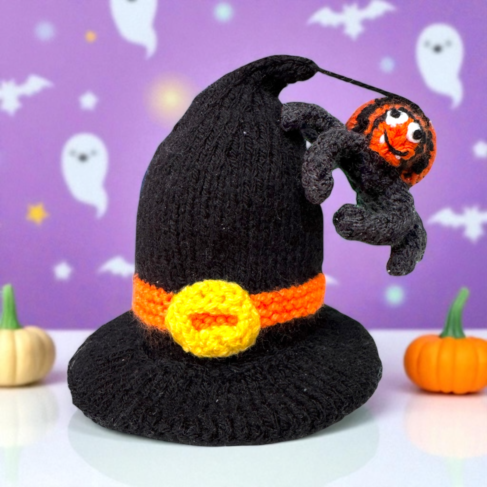 KNITTING PATTERN - Halloween Witch's Hat with Spider chocolate orange cover / 9 cms toy